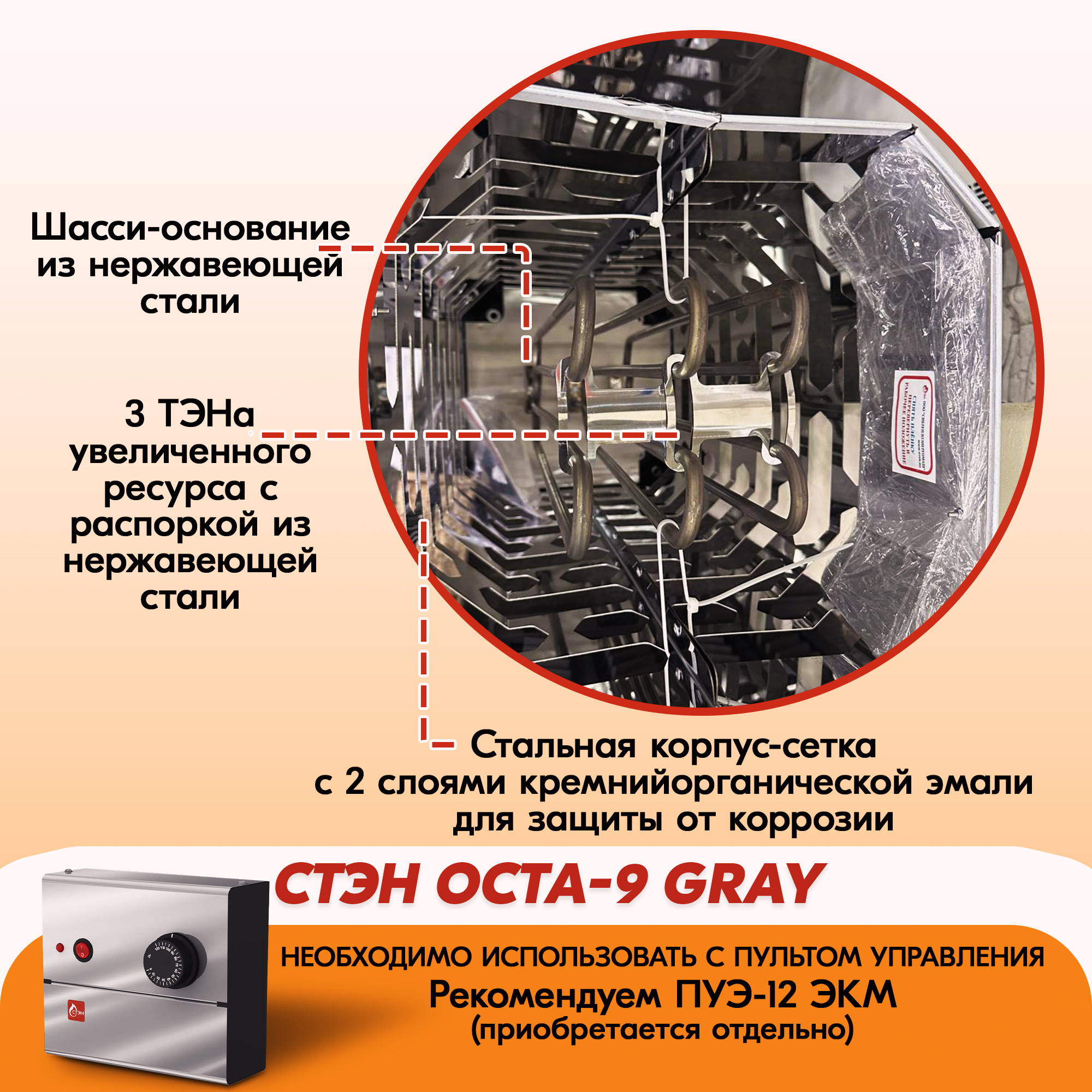 Электрическая каменка СТЭН ЭКМ 9 Octa gray в Казани | Доставка по России