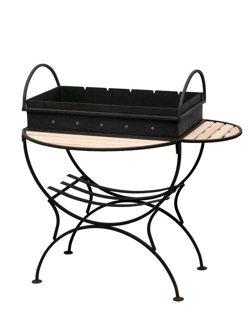 ●    Рабочая часть мангала оборудована боковыми и передними полками, предназначенными для использования в качестве подставки для посуды и соусов.