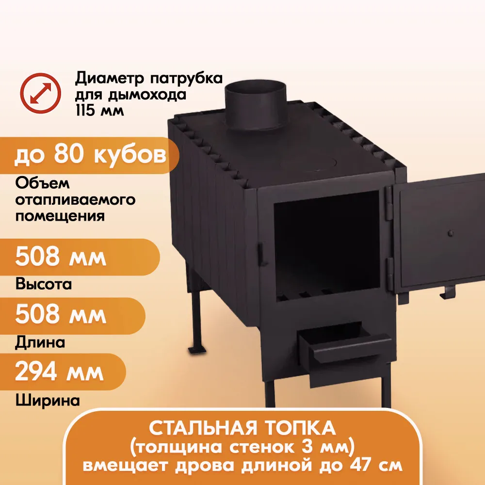 Дровяная печь Буржуйка от PECHITEPLOV обеспечит вас теплом в любое время года вне зависимости от наличия электричества, может также использоваться для нагрева воды и приготовления пищи.