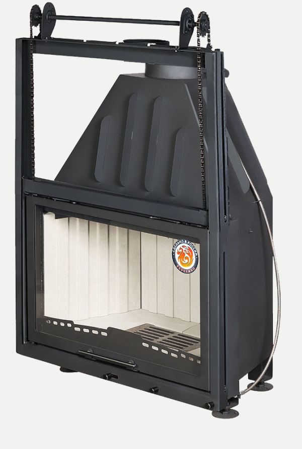 •Высокий дымосборник и пламярассекатель не позволяют продуктам горения попадать в помещение при открывании дверцы.