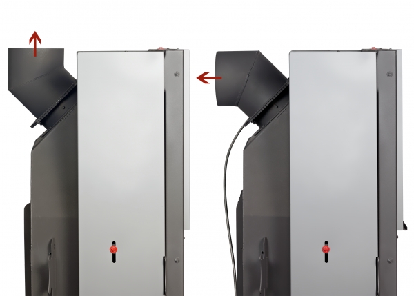 •Встроенная шиберная заслонка позволяет увеличивать/уменьшать сечение дымового канала и регулирует мощность топки.