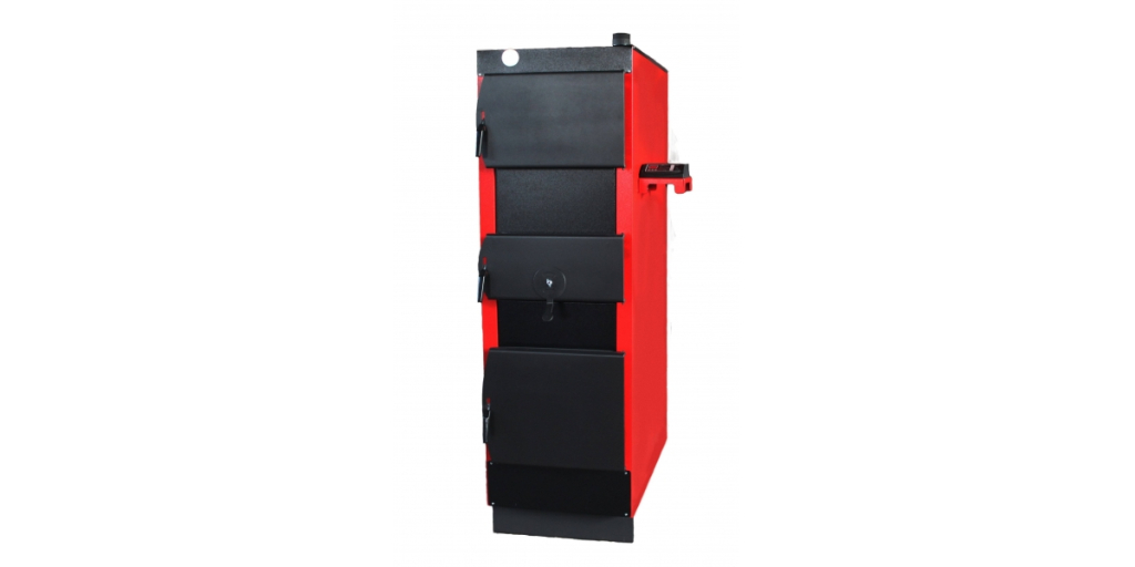 Котел можно монтировать как в открытых системах отопления c естественной циркуляцией теплоносителя, так и в закрытых системах с принудительной циркуляцией. Корпус котла имеет цельно сварную конструкцию и состоит из топки – теплообменника и наружного кожуха. Пространство между кожухом и топкой заполнятся теплоносителем (водой) теплообмен происходит по всей наружной поверхности топки. Теплообменник котла изготовлен из качественной стали толщиной 4- 5 мм. Котел комплектуется воздухонагнетателем (вентилятором) и контроллером (микропроцессорным терморегулятором) что обеспечивает оптимизацию процесса горения дров при различных режимах и длительность горения на одной закладке от 6 до 15 часов.