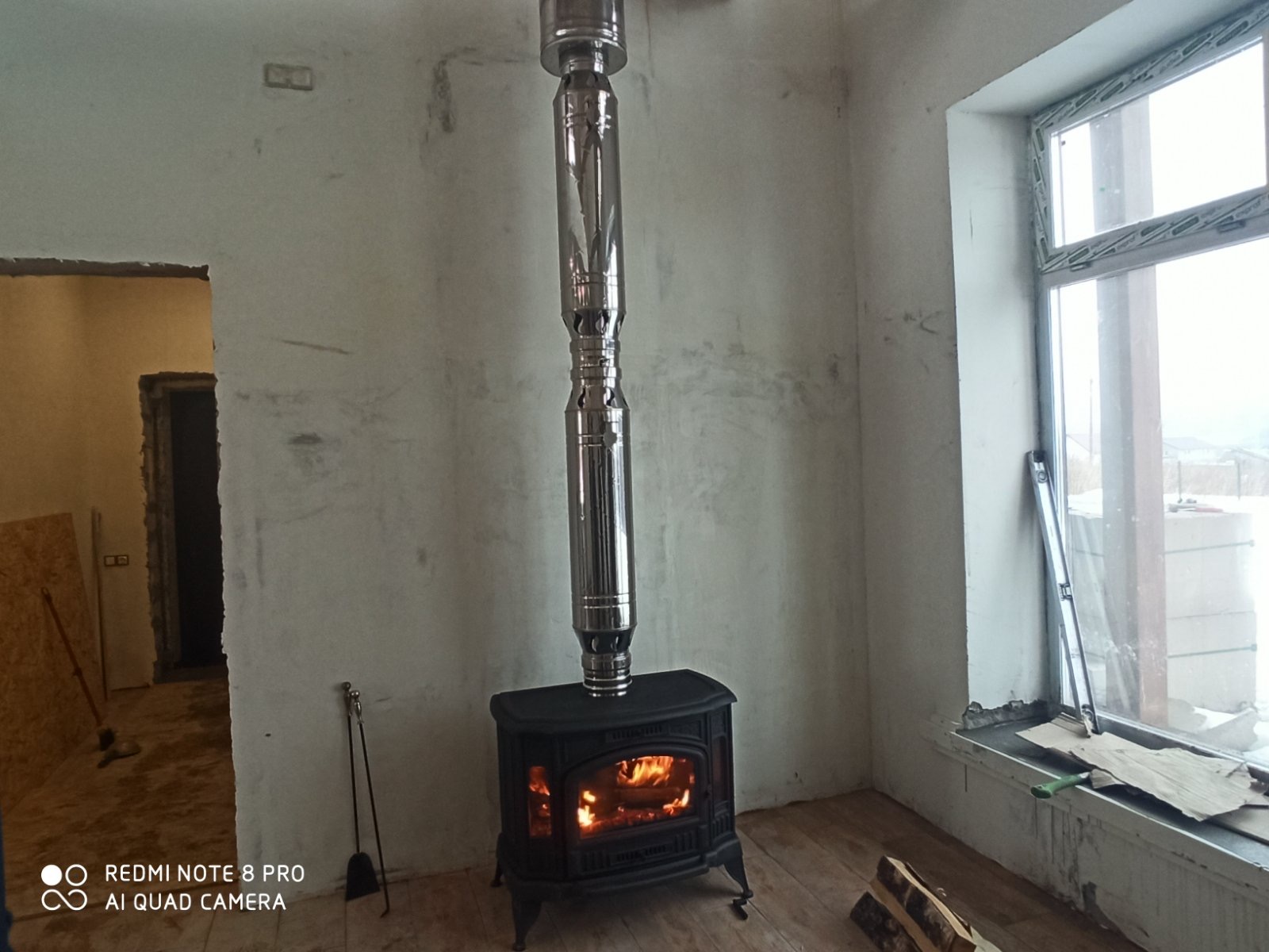 Установка камина KOZA K9 с монтажем дымохода 2,5м.