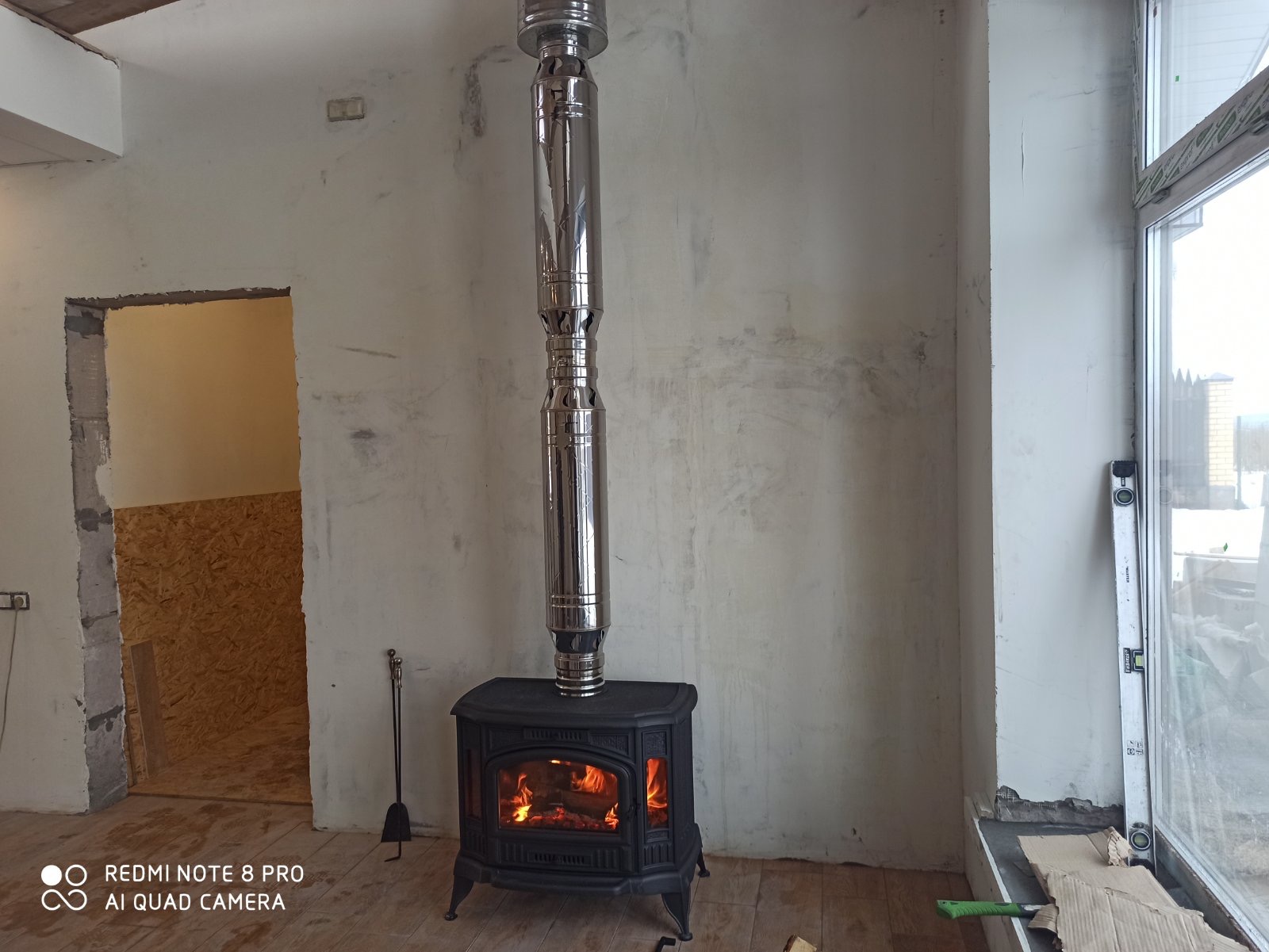 Установка Камина KOZA K9 и комплект дымохода 2,5м